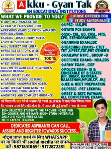 EXAM WISE- नोट्स प्राप्त करने के लिए WHATSAPP पर या किसी भी social media पर संपर्क करें। – 9172872281